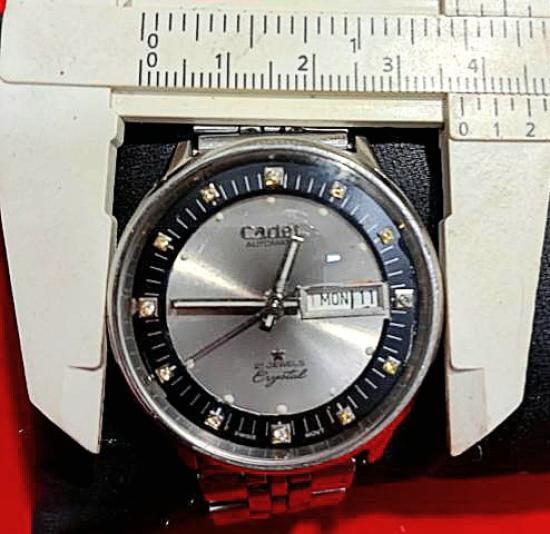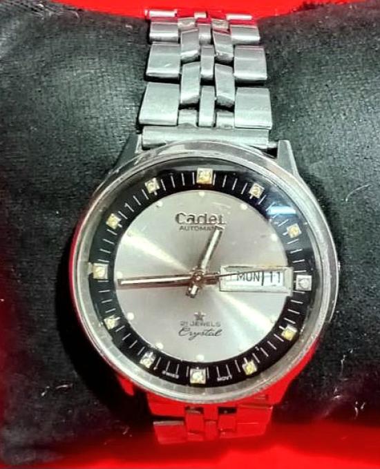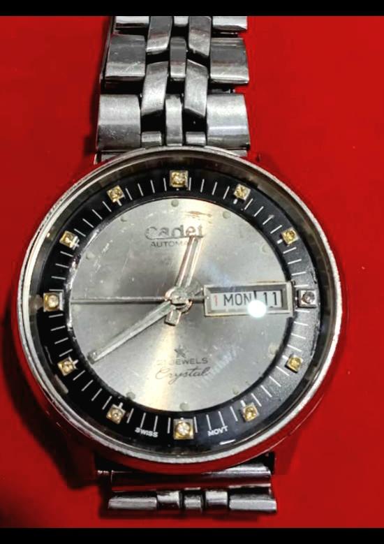วินเทจ Cadet 21 jewels crystal 2062 ขนาด 38 มม.ตัวเรือนหน้า14มม. สายเดิมยาว16ข้อเดินปกติ วันที่ตั้งเร็วหมุนกลับปกติพร้อมใช้ครับ |
