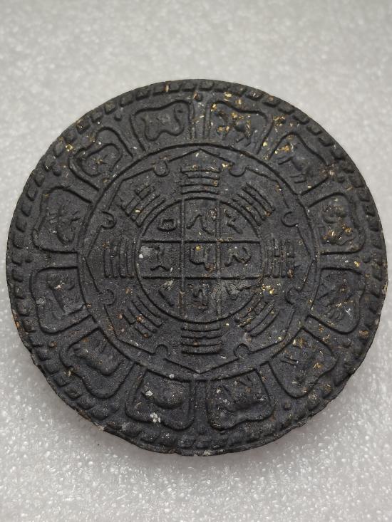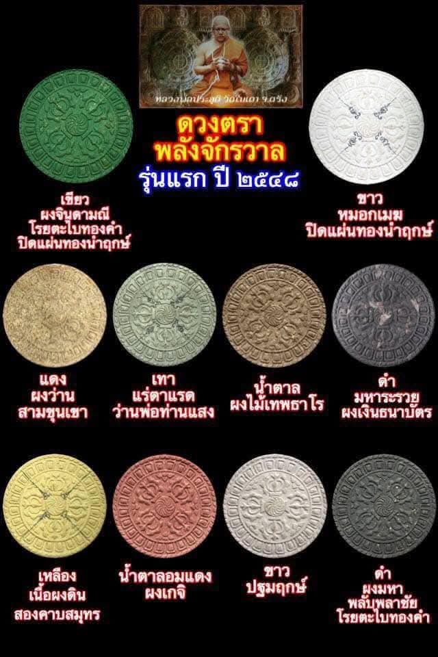 ผงว่านดวงตราพลังจักรวาล รุ่นแรก พระอาจารย์ประสูติ วัดถ้ำพระพุทธโกษีย์ (วัดในเตา) ปี 2548 เนื้อดำผงมหาพลับพลาชัยโรยตะไบทองคำ (องค์นี้มีรอยแตกซ่อมที่ขอบมานิดครับ) |