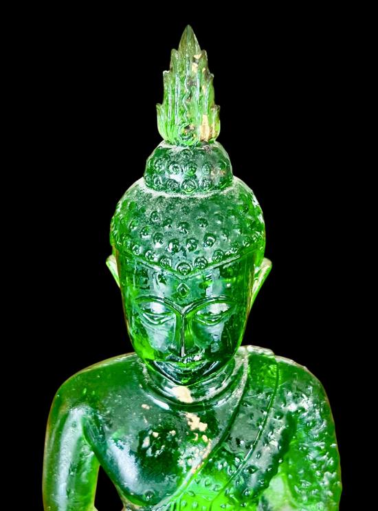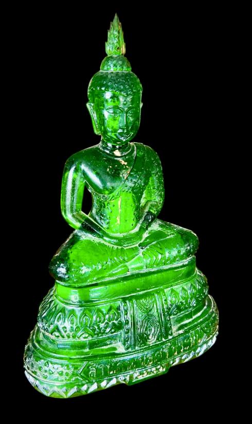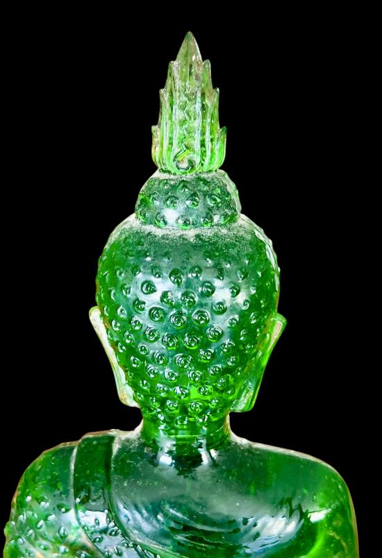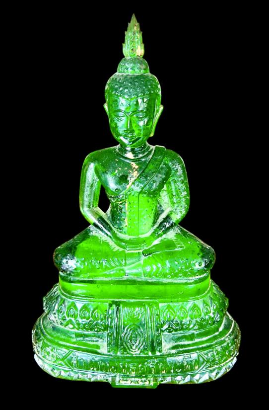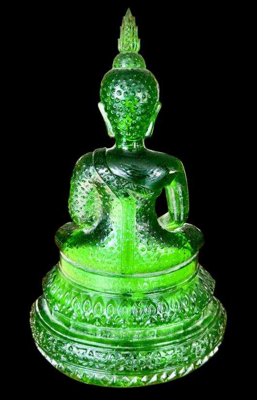 พระแก้วพิธี 25 พุทธศตวรรษ บล็อค JAPAN เนื้อแก้วสีเขียว สำนักพุทธศรีประทีป ก้นปั้มยันต์หลวงพ่อเต๋ สภาพสวยเดิม หน้าตัก 5 นิ้ว