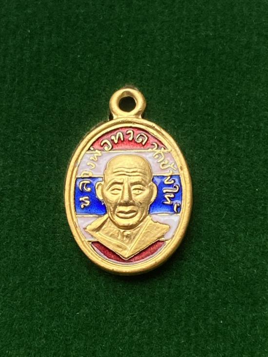 เม็แตงหลวงปู่ทวด หลังอาจารย์ทิม รุ่น100ปี เนื้อชุบทองลงยาธงชาติ |