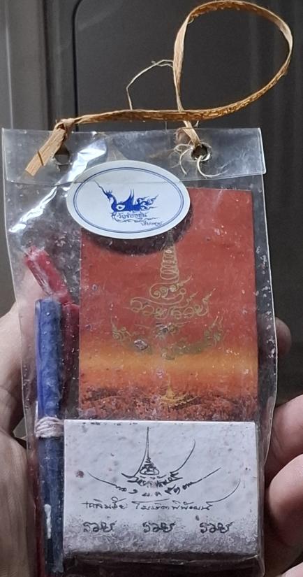 ชุดกล่องไม้ขีด+ธูป+เทียน+ใบโพธิ์+ลายเซ็นต์อาจารย์เฉลิมชัย ๑๙ ก.ย.๒๕๔๙ |