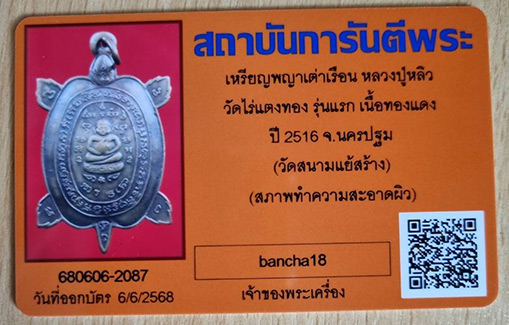 เหรียญพญาเต่าเรือนหลวงปู่หลิว รุ่นแรก ปี2516 (3เดือย2แตก) บล็อคนิยมสุด+บัตรรับรอง