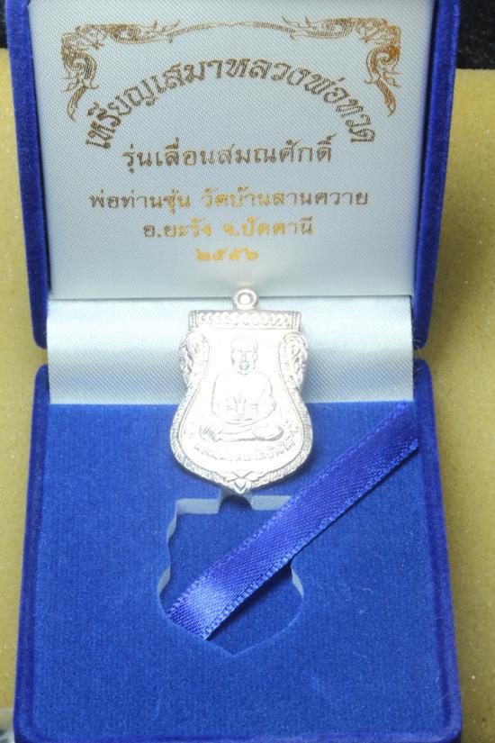** เนื้อเงิน หน้าเลื่อน วัดใจ 50 **เหรียญ เลื่อนสมณศักดิ์ เหรียญเสมาหลวงพ่อทวด พ่อท่านซุ่น วัดบ้านลานควาย จ.ปัตตานี ปี 2556