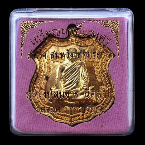 *** เคาะเดียวแดง ทุกรายการ *** เหรียญฤทธิ์แรงครูหลังพระพิฆเณศ เนื้อทองทิพย์ หลวงปู่สมชาย วัดคงคา กาญจนบุรี ปี 2557 มีกล่อง สภาพตามรูป (No.2)