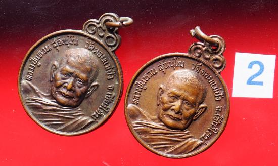 ( 2 ) เหรียญหลวงปู่แหวน สุจิณโณ วัดดอยแม่ปั๋ง ปี 2521 รุ่นร่มโพธิ์ เนื้อทองแดงน้ำตาล ( 2 เหรียญ )