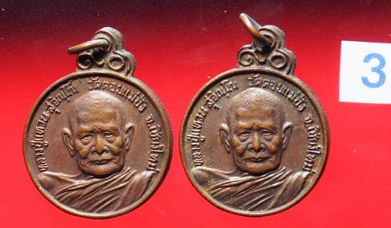 ( 3 ) เหรียญหลวงปู่แหวน สุจิณโณ วัดดอยแม่ปั๋ง ปี 2521 รุ่นร่มโพธิ์ เนื้อทองแดงน้ำตาล ( 2 เหรียญ )