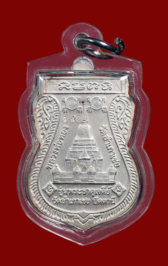 เหรียญ ลป.ทวด อ.ทอง วัดสำเภาเชย พิมพ์พุทธซ้อน รุ่นพระธาตุเจดีย์ เนื้อเงินลงยาเหลือง ปี 49 (หมายเลข 942) สวยเดิม + เลี่ยมพร้อมใช้ เคาะเดียวแดง |