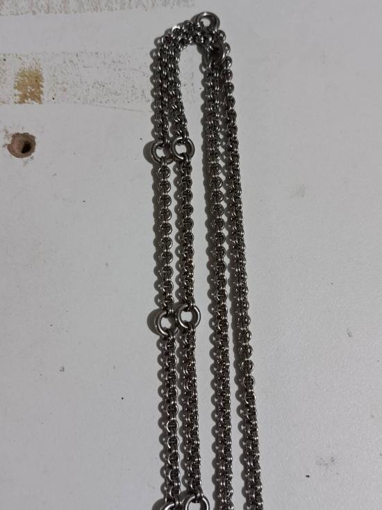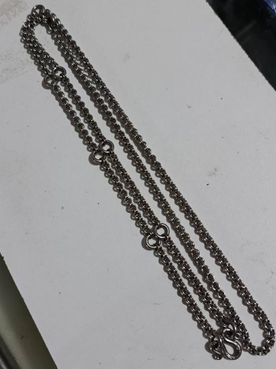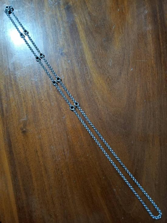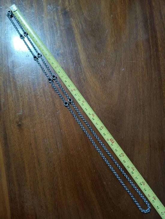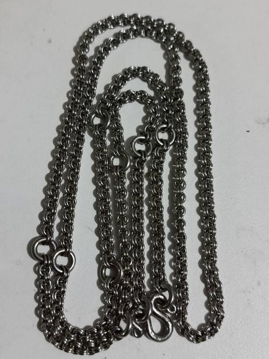 สร้อยคอเซียนพระห่วงคู่ สร้อยแสตนเลสพุกแท้ ห่วงตัด ตอกความละเอียด 100% แขวนพระได้ 9 องค์ รุ่นเก่าไม่ลอกไม่ดำ.ยาว 33 นิ้วสวมหัวได้ สวยสมบูรณ์ |