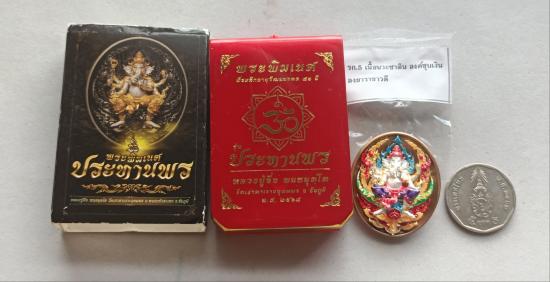 วัดใจเคาะเดียวแดงจ้า เหรียญหล่อพุทธศิลป์พระพิฆเนศ หลวงปู่จื่อ หลวงปู่ศิลา ร่วมเสก เนื้อนวะลงยาราชาวดี เคาะเดียวแดงจ้า |
