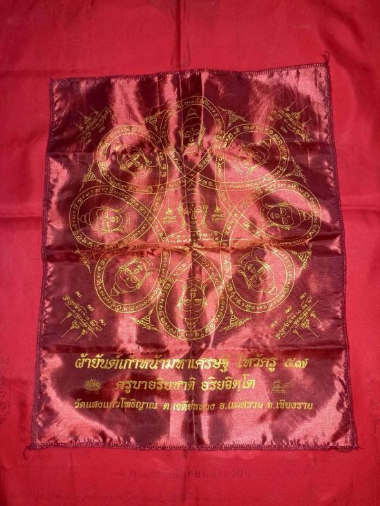 ผ้ายันต์เก้าหน้า มหาเศรษฐี ( เก้ามหาเศรษฐี ในสมัยพุทธกาล) ไหว้ครู ปี57 ครูบาอริยชาติ อริยจิตฺโต วัดแสงแก้วโพธฺญาณ อ.แม่สรวย จ.เชียงราย