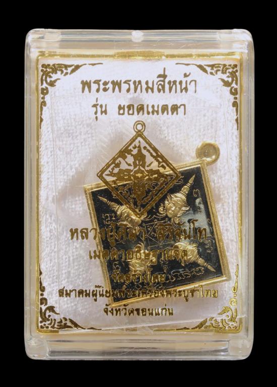 "วัดใจ แดง150" เหรียญพระพรหมสี่หน้า รุ่นยอดเมตตา หลวงปู่ศิลา สิริจันโท เนื้อทองแดงชุบทองลงยาสีดำ หมายเลข ๒๐๓