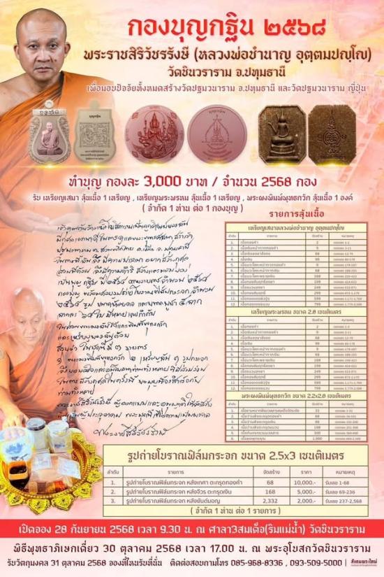 เปิดต่ำจอง หลวงพ่อชำนาญ วัดชินวราราม ชุดบุญกฐิน 2568 รับพระ 4 องค์ ราคาจอง ชุดละ 3,000 บาท