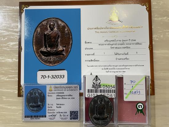 พร้อมจารเต็ม สร้างปี 2544 รุ่นโจรกลับใจ วัดท่าสะแบง สร้าง 366 องค์ พร้อมจารหน้าหลังและลายเซ็นต์กำกับ รับประกันพระแท้ 100% ใบประกาศงานสมาคมที่โคราช และบัตรรับรองพระแท้จากสมาคม