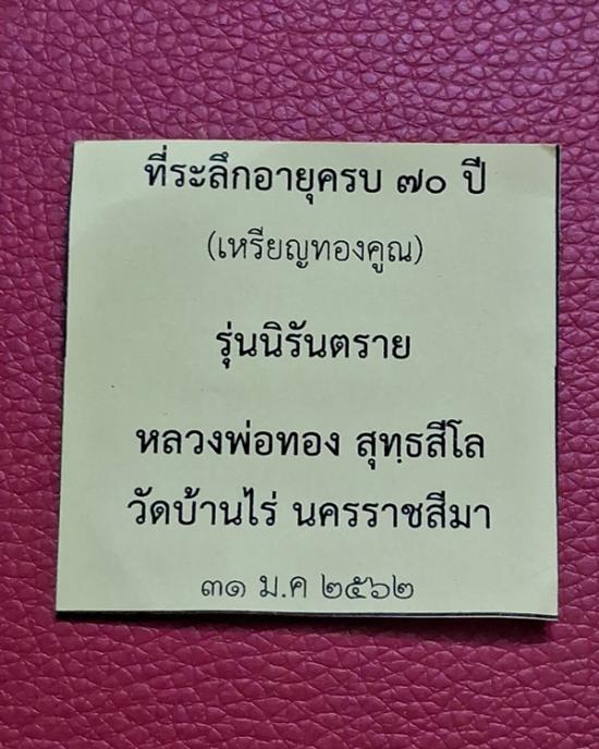เหรียญประสบการณ์ ที่ระลึกอายุครบ 70 ปี (เหรียญทองคูณ) รุ่น "นิรันตราย" หลวงพ่อทอง วัดบ้านไร่ "เนื้อทองแดง หลังยันต์ เลข 112 " พระหลัก พิมพ์นิยม เหรียญสวย ดี มีประสบการณ์ มีในรายการประกวดพระเครื่อง เกจิอนาคตไกล