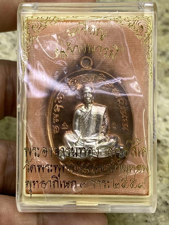 เหรียญสร้างบารมี หลวงพ่อทอง สุทธสีโล วัดพระพุทธบาทเขายายหอม ปี 2559 เนื้อนวะโลหะหน้ากากเงิน เลข 138 กล่อง สร้างน้อย 999 เหรียญ