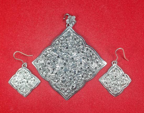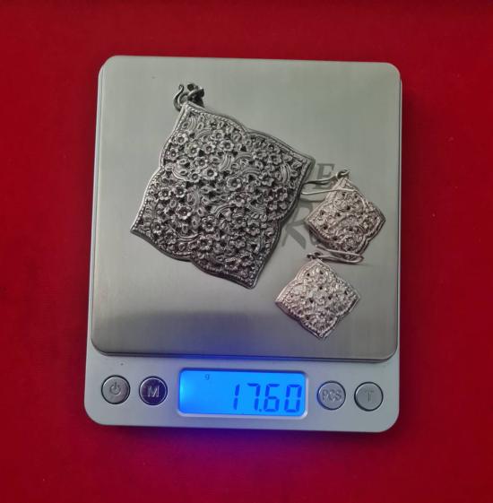 จี้เงินแท้ + ต่างหูเงินแท้ ลายดอกไม้ ตอกโค้ต 92.5% น้ำหนัก 17.60 กรัม |