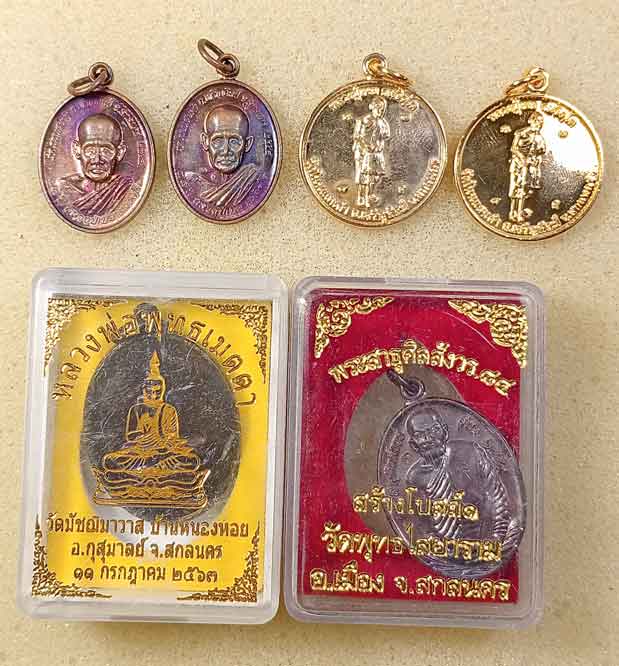 เหรียญหลวงปู่เนย สมจิตโต วัดโนนแสนคำ อ.เจริญศิลป์ จ.สกลนคร 4 เหรียญ + เหรียญหลวงพ่อพุทธเมตตา วัดมัชฌมาวาส สกลนคร + เหรียญพระสาธุศิลสังวร วัดพุทธไทสยาราม สกลนคร |