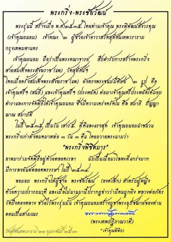 250.- ems พระกริ่ง - พระชัยวัฒน์ พิชิตมาร รุ่นทูลเกล้า เสาร์๕ (จันทร์เพ็ญ ๑๒) เนื้อนวะโลหะ วัดสุทัศน์ ปี 2535 *พระหล่อไม่เต็ม กริ่งดังดี ตอกโค๊ดชัดเจน เจ้าคุณถนอม วัดสุทัศน์ คณะ2 จัดสร้าง เสกพิธีใหญ่ |