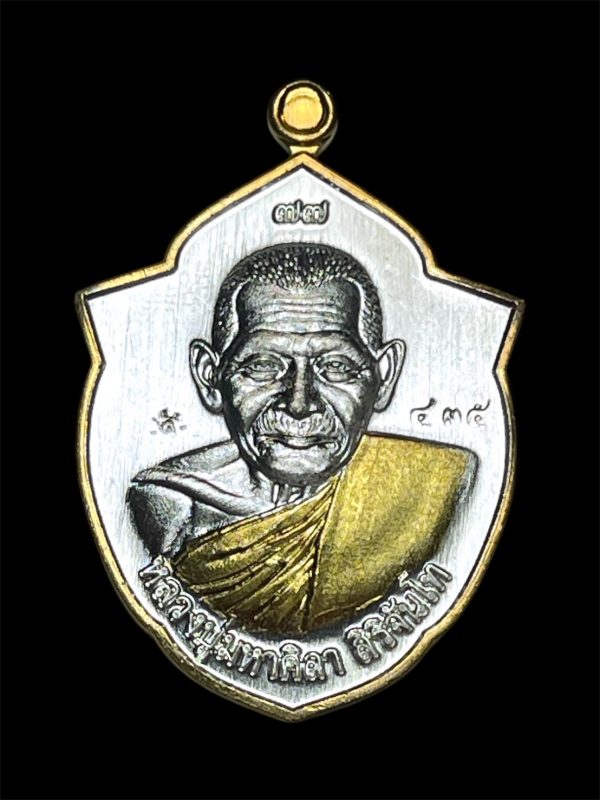 เหรียญหน้าวัว หลวงปู่มหาศิลา สิริจันโท วัดโพธิ์ศรีสะอาด เนื้อทองทิพย์ ลงยาจีวร ตอกแจก หมายเลข "144" มาพร้อมกล่องเดิมครับ
