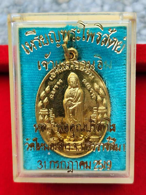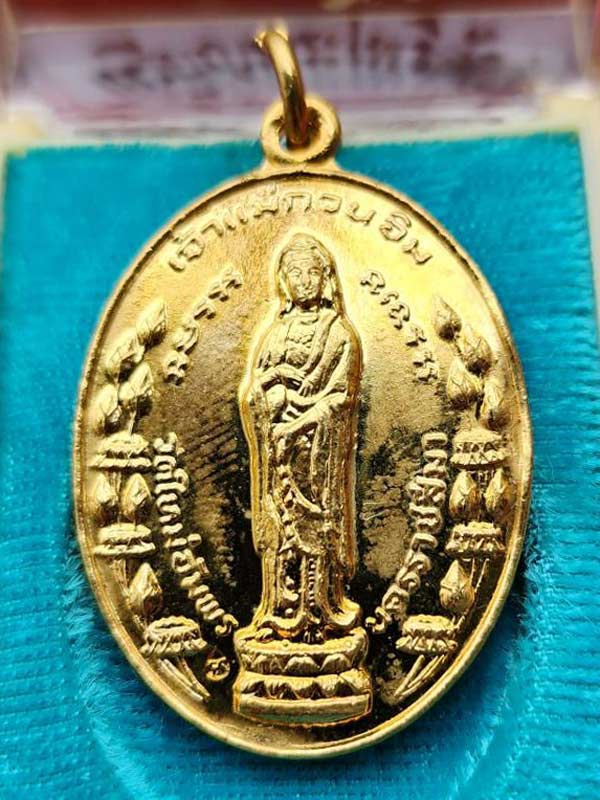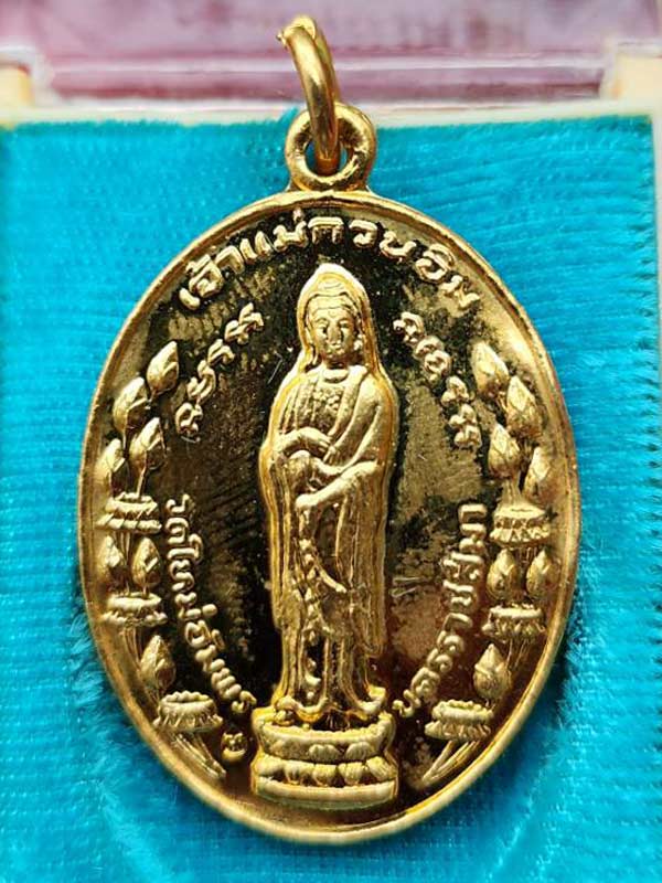 เหรียญเจ้าแม่กวนอิม วัดใหม่อัมพร จ.นครราชสีมา ปี2519 กะไหล่ทอง กล่องเดิม