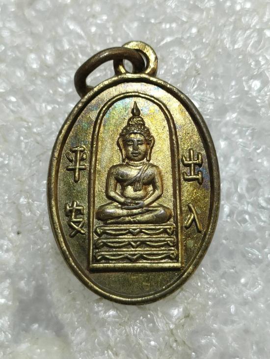เหรียญเม็ดแตงพระพุทธ หลังเรียบ สมเด็จพุฒาจารย์นวม วัดอนงค์ ปี2497 เนื้อทองแดงกะไหล่ทองสวยเดิม |