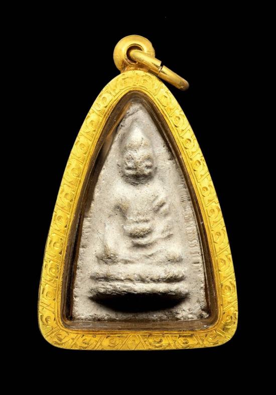 พระพุทโธน้อย แม่ชีบุญเรือน วัดอาวุธฯ พิมพ์เล็กหลังยันต์พุทโธ เนื้อผง ปี 2494 กรุงเทพฯ เลี่ยมทองหนา