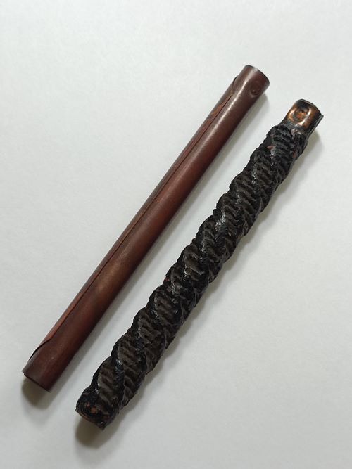 " วัดใจ เคาะเดียวแดง " ตะกรุดวัดไผ่ล้อม(ตะกรุดโทนมหาอำนาจ) หลวงปู่ทิม วัดละหารไร่ ปลุกเสก ออกวัดไผ่ล้อม ปี 2513 โค๊ดนะกลับ ขนาด 4 นิ้ว จำนวน 2 ดอก (แบบเปลือย 1 ,ถักเชือก 1)