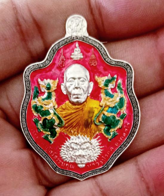หลวงปู่รอด อาภัสสโร เหรียญมังกรรวยรับทรัพย์ เนื้อเงินบริสุทธิ์ ลงยาแดงเต็มสูตร NO.๒๒ เลขเบิ้ลสองหลัก ๒๒ สวยงามหายาก