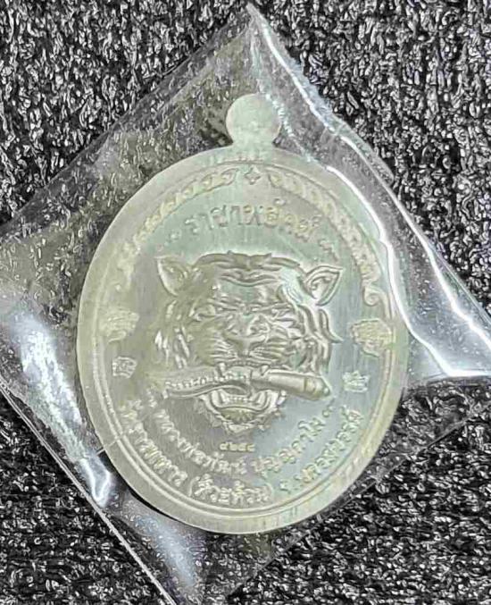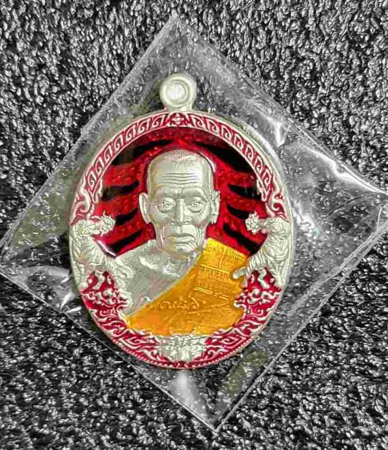เคาะเดียวแดง เหรียญหลวงพ่อพัฒน์ รุ่นราชาพยัคฆ์ เนื้อเงินลายเสือ ลงยาแดง ลงยาจีวร |