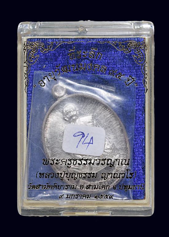 เหรียญเนื้อเงินพระครูธรรมวรญาณ (หลวงพ่อบุญธรรม ญาณวโร) วัดสามัคิยาราม ปทุมธานี ปี2559 สวยเดิมพร้อมกล่อง