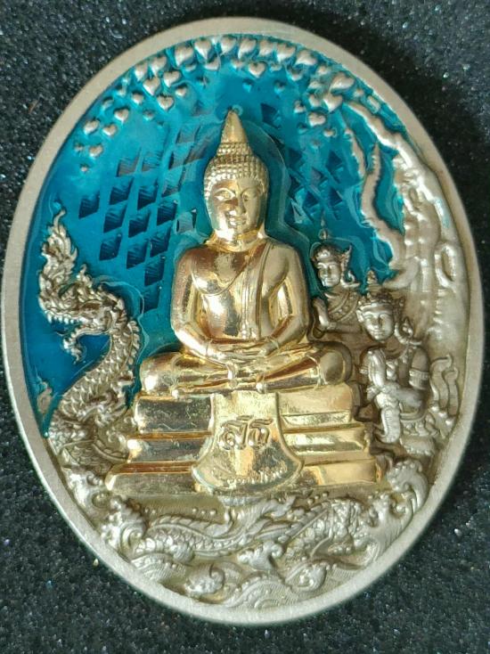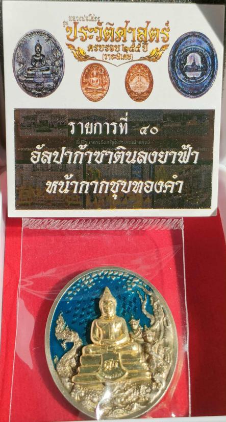 ชื่อพระเครื่อง เหรียญพระพุทธโสธร(หลวงพ่อโสธร) รุ่น ประวัติศาสตร์ครบรอบ ๒๕๕ปี(วาระพิเศษ) วัดโสธรวราราม จ.ฉะเชิงเทรา เนื้ออัลปาก้าซาติน คุ้ยพื้นลงยาฟ้า หน้ากากชุบทองคำ หลังวิหารหลวงพ่อโสธร หมายเลข ๔๒ พร้อมกล่อง
