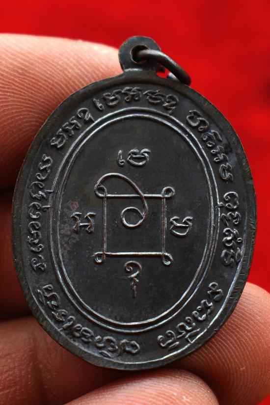 เหรียญหลวงพ่อแดง วัดเขาบันไดอิฐ รุ่นแจกผ้าป่า พิมพ์หลัง ๗ เอียง (บล็อกทองคำ) เนื้อทองแดง ปี 2516 จ.เพชรบุรี