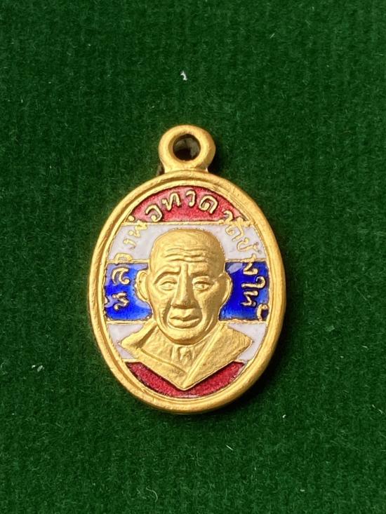 เม็แตงหลวงปู่ทวด หลังอาจารย์ทิม รุ่น100ปี เนื้อชุบทองลงยาธงชาติ