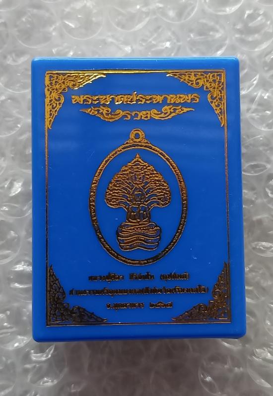 หลวงปู่ศิลา สิริจันโท วัดโพธิ์ศรีสะอาด จัดสร้างเพื่อซื้อที่ดินถวายสวนธรรมสังกัด บ้านนาตะแบง เนื้อกระไหล่ทองลงยาเขียว ลงยาจีวร ตอก"กรรมการ" พร้อมกล่อง