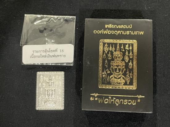 เหรียแสตมป์ องค์พ่อจตุคามรามเทพ พ่อให้ลูกรวย เนื้อกะไหล่เงินพ่นทราย หมายเลข 883 พร้อมกล่อง