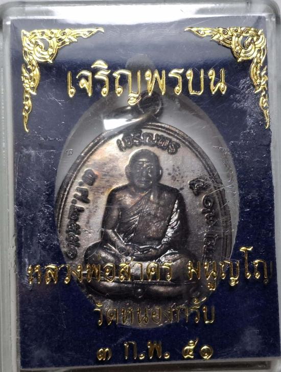 เหรียญเจริญพรบน เนื้อทองแดงรมดำ ปี 2551 หลวงพ่อสาคร วัดหนองกรับ สวยเดิม จมูกโด่ง พร้อมกล่องเดิม |
