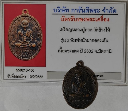 ชื่อพระเครื่อง เหรียญหลวงปู่ทวด รุ่น2 หน้าผากสองเส้น เนื้อทองแดง ปี2502 วัดช้างไห้ จ.ปัตตานี