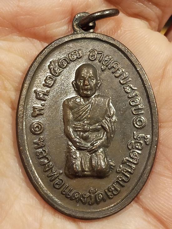 รายละเอียด เหรียญคุกเข่า หลวงพ่อแดง วัดเขาบันไดอิฐ เพชรบุรี ปี 2517 เนื้อทองแดงรมดำ 3 ชาย
