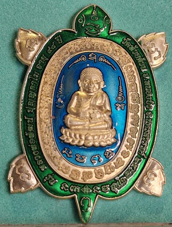 พญาเต่าเรือน รุ่นสุขใจ เนื้ออัลปาก้าลงยา 2 สี เขียว ฟ้า Number 67 พระเก่าปีลึกปี 62 สวยงามไม่ได้ใช้งาน มาพร้อมกล่องเดิม |