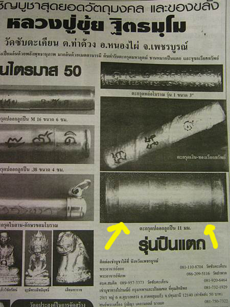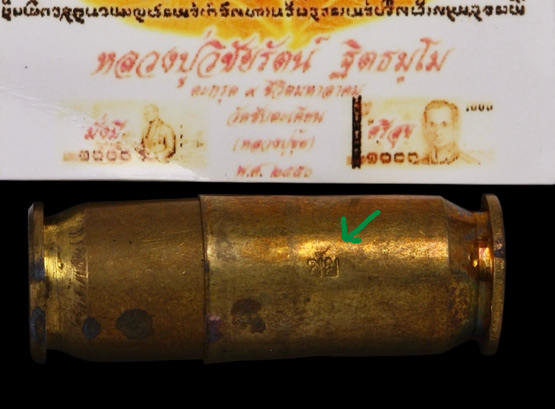 ตะกรุดปืนแตก ปลอกลูกปืน 11 มม. ยาว 1.5 นิ้ว ปี2550 หลวงปู่ขุ้ย วัดซับตะเคียน + ภาพ + ซองเดิม E-3