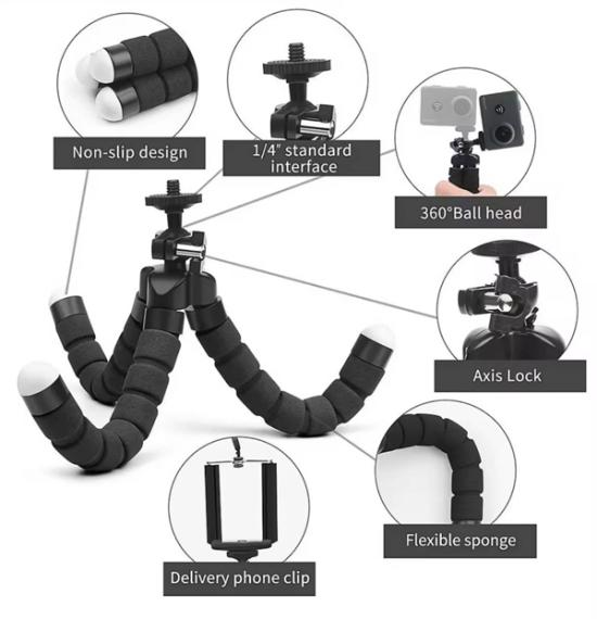 เป็นขาตั้งกล้องแบบยืดหยุ่น ถ่ายรูป ถ่ายคลิปทำคอนเทนต์ สะดวก ม้วนติดยึดกับราว กิ่งไม้ วางตั้งกับพื้นได้ ฯลฯ