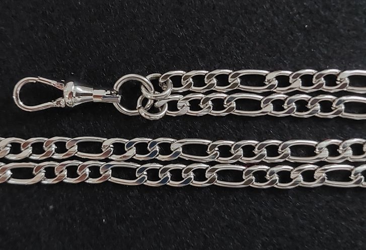 สร้อยสแตนเลส ลายฟิกาโร่ ยาว 26 นื้ว พร้อมสปริงก้ามปูสแตนเลสหมุนได้ ขนาดสร้อยกว้าง 5 มม. หนา 1.5 มม. |