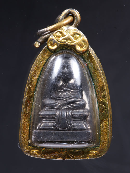 พระหลวงปู่ทวด วัดห้วยมงคล ลอยองค์ ก้นลายเซ็นต์ โลหะผสมรมดำ- เลี่ยมไมครอนเดิมวัด |