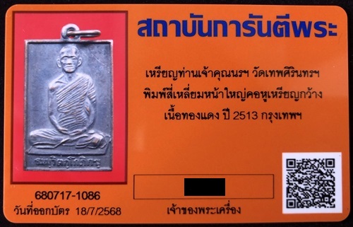 เหรียญท่านเจ้าคุณนรฯ วัดเทพศิรินทรฯ พิมพ์สี่เหลี่ยมหน้าใหญ่ เนื้อทองแดง ปี 2513 จ.กรุงเทพฯ สวยเดิม มาพร้อมบัตรรับรองครับ