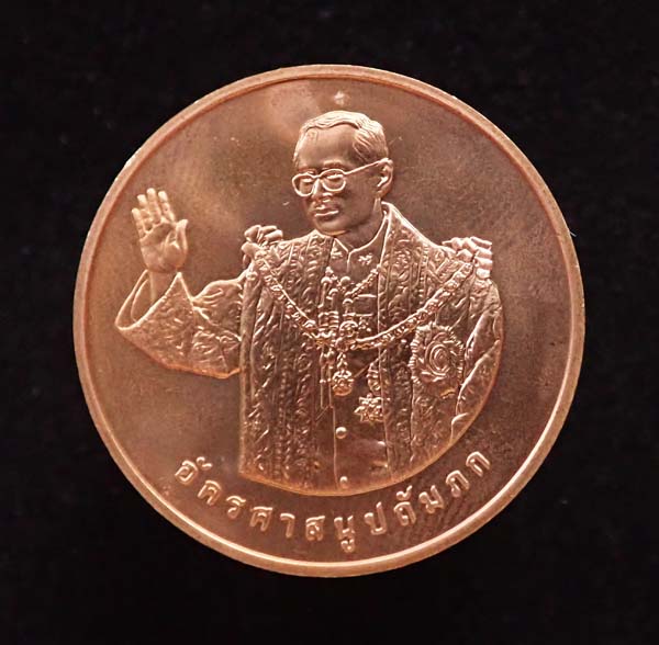 เหรียญในหลวง ร.๙ "ทรงยินดี" "ที่ระลึกสร้างพิพิธภันฑ์พุทธมณฑล" ปี 2549