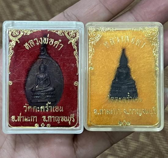 เหรียญและรูปหล่อหลวงพ่อดำ วัดตะคร้าเอน ท่ามะกา กาญจนบุรี สวยเดิมนินกล่อง