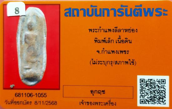ชื่อพระเครื่อง วัดใจ พระกำแพงลีลาหย่อง กรุวัดพิกุล พิมพ์เล็ก เนื้อดิน จ.กำแพงเพชร พร้อมบัตรรับรองจากจีพระ