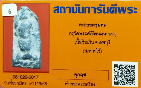 วัดใจ พระยอดขุนพล กรุวัดพระศรีรัตนมหาธาตุ เนื้อชินเงิน จ.ลพบุรี พร้อมบัตรรับรองจากจีพระ