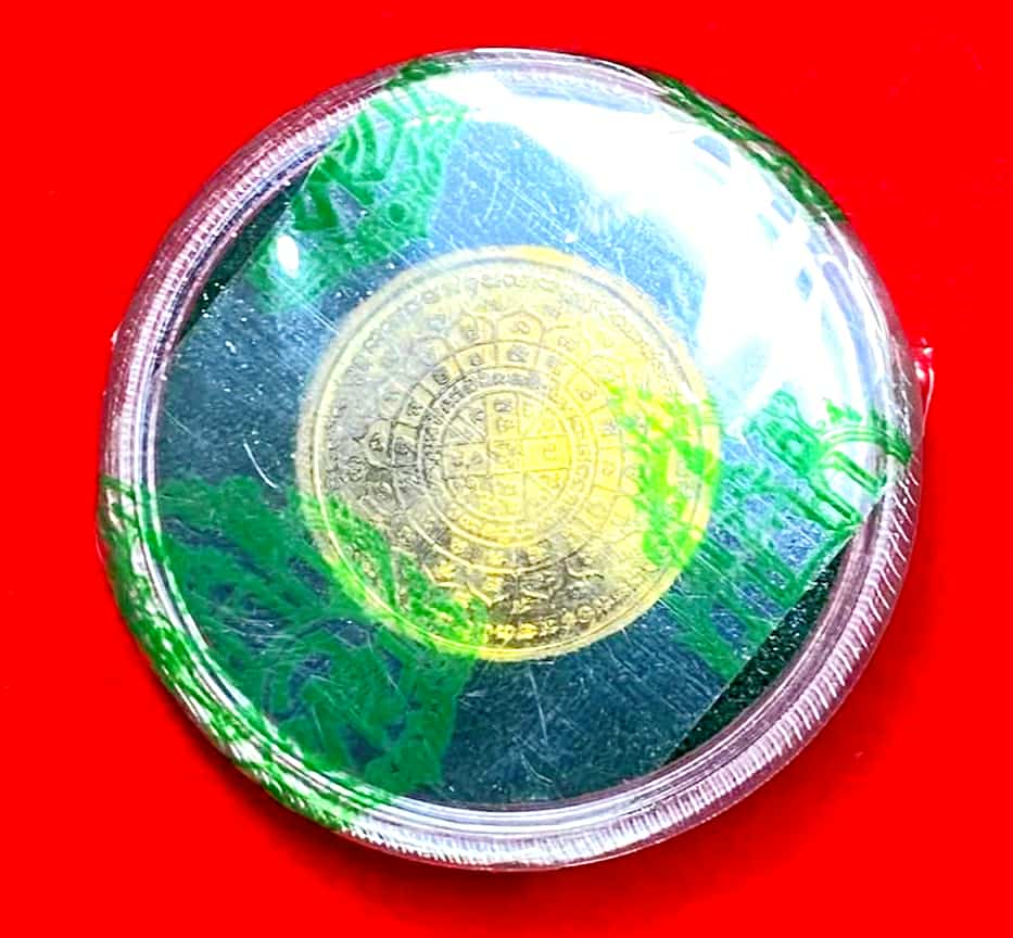 333 เคาะเดียว..... เหรียญโชคดี รุ่นแรก เนื้อทองฝาบาตร พระอาจารย์ต้อม วัดท่าสะแบง (ยังไม่แกะซีล ลุ้นเลข) ตลับเดิมๆจากวัด |