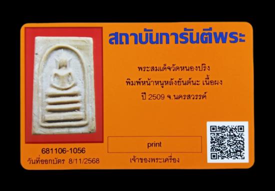 พระสมเด็จ พิมพ์หน้าหนูหลังยันต์นะ เนื้อผงน้ำมัน วัดหนองปลิง จ.นครสวรรค์ ปี 2509 (หลวงพ่อกวย ปลุกเสก) พร้อมบัตรรับรองครับ